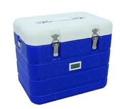 Thùng vận chuyển máu lạnh 2-8°C, sản xuất bởi CryoTech Systems, dùng trong 60 tháng.